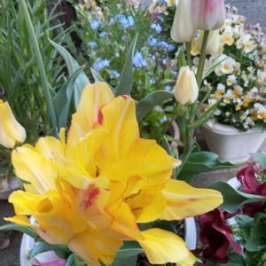 植え替えしなかったので、チュウリップが窮屈そうに咲いています。
