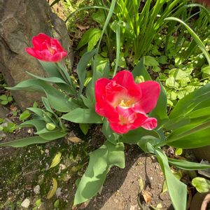 こんにちは😊🎶🌷 今日は雲ひとつない快晴でした チュウリップの大きいのと小さいの とても可愛いく💕咲きました。