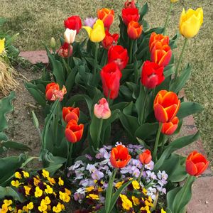 さまざまな色のチュウリップ。 とってもきれい🌷 道行く人も癒します。