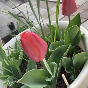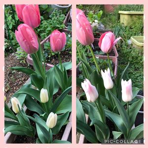 秋に仕込んだチューリップ🌷 次々と開花、心ときめく時。待っ時間長いから一層