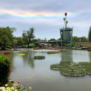 砺波チュウリップフェアに行ってきました🚗 ³₃ お昼頃空の雲に虹がかかり幻想的な雰囲気でした😊💕