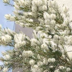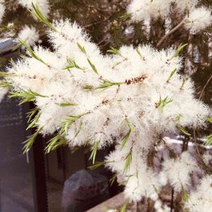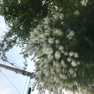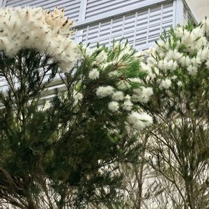 草花というより街路樹です。 ブラシの木のようですが白い花です。