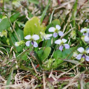 白色系のスミレでしょうか? お花は1cm位の大きさだったと思います。 「ツクシスミレ」と教えていただきました。