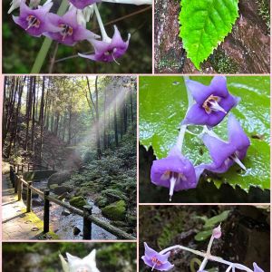イワタバコ(岩煙草) 朝早く見に行ってきました♬ (実は今年3回目😆) ⬅️振り返れば陽が差して朝靄が見え幻想的です✨ マイナスイオンいっぱです✨✨ 朝とは言え30℃近い外気温ですがこの場に来ればとても涼しいです イワタバコはこの辺り一帯、岩の壁に生えています♬ 川向こうには大株、密に咲く株も見られますが遠いです。 珍しい白花も見られました。 ↗️岩の上に落ちた葉っぱのように見えますが、新しく出てきた葉なんですよ♬ こうやって増えるんですね♬