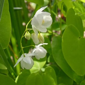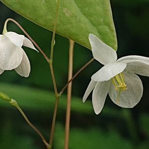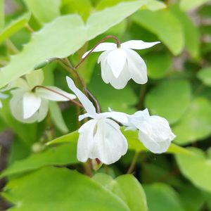 全開前の白い可愛い小さな花は1センチ位です。 4個の萼片が花弁状で花弁と同長でまるで花びらの様で愛らしいですね♡ イカリソウの仲間ですが花が梅の花に似ていることから和名は「梅花碇草」といわれます。 中国地方、四国、九州に分布