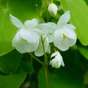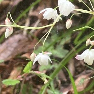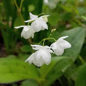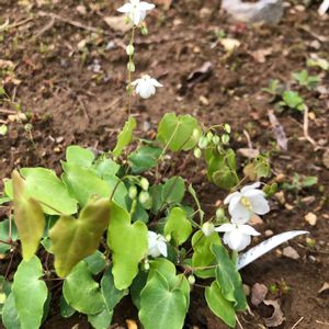 イカリソウの仲間とは思えないような形の花、小さくて白い妖精が飛んでいるようです(*˘︶˘*).。*♡ 花の形が梅の花に似ていることからバイカイカリソウ「梅花錨草」と名前が付いたそうです。 本州の中国地方、四国、九州の山地に生える多年草 メギ科イカリソウ属