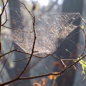 麓城跡の山道で 虹色の蜘蛛の巣✨