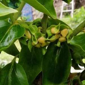 雨の中柿も秋まで頑張ってます🌿 渋柿なので 秋には吊るし柿予定です