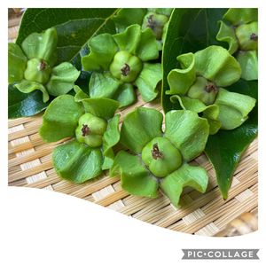 柿の赤ちゃん達🧡 ご近所の大きな柿の木の下にたくさん落ちてて、 こんな頃から柿のヘタは出来上がってるんだ!とはじめて知りました