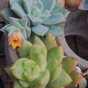 おはようございます☁️ 足元に置いてある多肉さんの寄せ植えに花が咲きました。見逃しそうでしたが、1つしかない蕾が咲くところを見られてよかったです🍀😊🍀