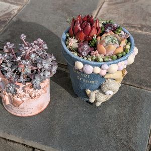 1ヶ月前に作ったチマ寄せです🌱 ͛.* セダムたちは元気なんですが、紅司ちゃんがシワっとしてきて、ちょっと元気ナィ(・д・。 もう少し水𖠚໊⸝⋆︎あげた方がいいのかな…🤔💭