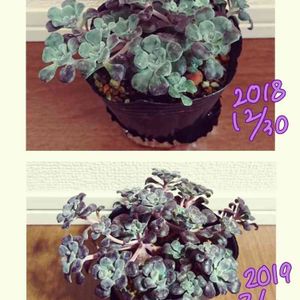 昨年末にお迎えしたパープレウム🍀✨白雪ミセバヤとの間違い探しも楽しいけど、現物はそもそも大きさが違うから別物🤣🤣🤣 ワンシーズンでしっかり紅葉してもりもりになりました🙌💡まだ黒ポットで、こないだ水やりしたとこだから、植え替えは来月だな😁🎵 紫の多肉さん、やっぱりいいな(*´ω`*)💜