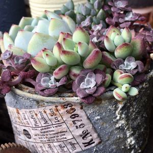 お気に入りの鉢。 全部カット苗だったので心配だったけど ドラゴンズブラッドさんが一本、カーテンに引っかかって抜けてた😱以外は順調に根付いてる様子。 あ、パープレウムはまだ危ういかなー🤔 そういえばドラゴンズブラッドもコーカサスキリンソウなんですね。はじめて知った。