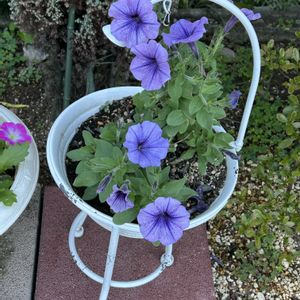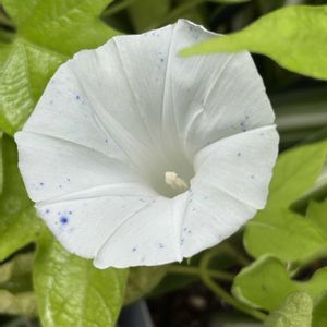 変化朝顔が2種咲いています 1️⃣2️⃣ 朝起きるといつも萎んでいてきちんと咲いている姿を見たことがなかった朝顔 少し気温が落ち着いたせいなのか今朝見られました😊 白地に青の点 インクを散らしたような模様です 3️⃣4️⃣ 紫の筋の入る朝顔は同じ模様はひとつとない咲き方です 白よりも花もちが良いようです 5️⃣ 3種目はまだ花を見ていないのですが葉がくるくると巻いているタイプ 花の形は細い花弁のタイプのようですがつぼみが丸く、いまのところできてもすぐ黄色くなり咲いていません 今後が楽しみです 😅カメムシが殺虫剤で追い払ってもすぐにまた集まってきます💦