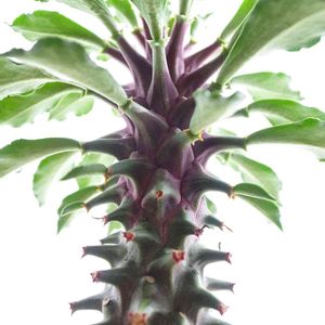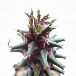 2/15に仲間入りした 紫シューベイさん 赤くて(紫?)縞模様で 飛び出てて(戦闘力高そう) 先端に金平糖みたいなトゲついてて 葉っぱはフチが ウェーブしててひらひらで なんだか属性てんこ盛りすぎて ごちゃごちゃでキモカワ😅 環境が変わったからなのか 購入後バラバラと葉を落として 心配したけど 新しい葉が出てきて成長し始めた 一安心💨