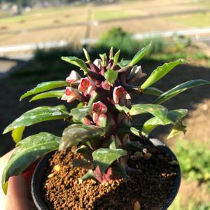 今日の珍奇植物はモナデニウム タンザニアレッドちゃん!(紫シューベイ) ハロウィンチックな花が咲いているのでハロウィンに載せれば良かったなーと今更後悔(^◇^;) この子は名の通りタンザニア出身のモナデニウムで葉っぱは肉厚、幹の色はワインレッドです!モナデニウム シューベイのレッドフォームなので紫シューベイと呼ばれる事もあります! 同じモナデニウムにシューベイやリュチュイやリュチュイ錦などがありますが基本的に育て方は一緒です! モナデニウム はユーフォルビアに近い仲間らしいので根っこが弱く植え替えの時は少し注意しますね。冬場は室内に入れると冬越ししてくれます、その際は月に2回くらい晴れて暖かい日に水をあげると根っこが弱りにくいです、簡易加温ハウスなどある方は通年水やりも可能です(*・ω・)ノ うちは野外ハウスにモナデニウム とユーフォルビアを入れていて今年の冬にモナデニウムが大打撃を受けたので今年はおとなしくカランコエなどと一緒に室内に入れたいと思います(^◇^;)