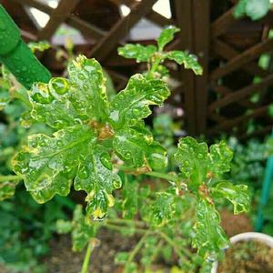 イギリスのナラの木 コンコルディア、新葉が出てきたょ(*´∇`*)🎵✨ 可愛いでしょ〜黄緑色の葉っぱなんだょ(*ฅ´ω`ฅ*) うちのママワンコ(コルディア)の名前なのん(*´∇`*)