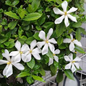 おはようございます😊✋ 今朝🐾散歩道…… クチナシのお花さんが風車のように咲いてました😁 甘~い香りをお届けしたい😋