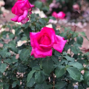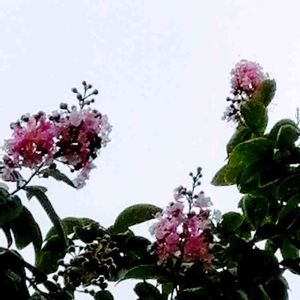 ピンク色のサルスベリも見つけました🙄✨ ポツポツ空模様🌧️ 🐾抱っこして退散…😅