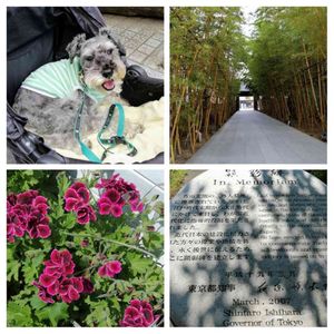 暑いのに~、バギーでちょっとお散歩🐾 …😅失敗 バギーに乗っててもハァハァ💦〰️ 青山の外人墓地でのちょっと気になるプレート……🤔 ゼラニウムも満開で綺麗だねぇ❣️