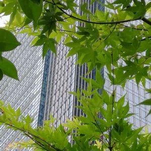 見上げたら、空じゃなくて高層ビル…😅残念 🌿みどりがとてもキレイだったのに…😁