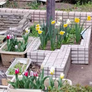 犬散歩道、小学校内の花壇に🌷🌷🌷可愛い~水仙💖