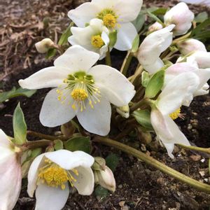 陽当たりの悪い場所で、長い間ツボミのままだったクリローさん、 やっと咲き始めました。花茎の短い ずんぐり型で、泥だらけになりながら。