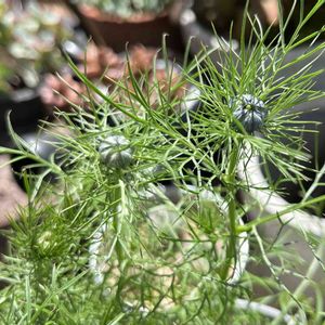 10月にニゲラの種を蒔きました。 青白ピンクの花の種です。 何色が咲くかは咲いてからのお楽しみ🙈🎁 蕾が膨らんできたよ。💙の予感だよー ♪