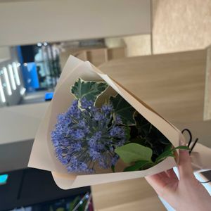アリウム ブルーパフュームと 利休草。 涼しげな切り花 お迎えしました💠🌿 ふんわり加工で 涼しさ増し増しに…☺️🎐
