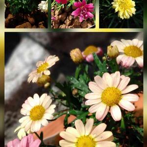 おはようございます☀ 庭のボンザマーガレット🌼🌼 上の3枚…八重咲き 下の1枚…一重咲き です。 マーガレット🌼は、大好きな花です😊 可愛い💕 (2021/5pic)