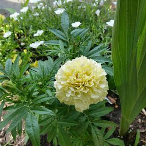 探し続けてついに入手できました😁!マリーゴールドはたくさんみかけるのですが、なかなかこの色を見つけられず。淡いイエローがかわいい~(*´-`)❤ 早速確保しておいたスペースに植えました☺