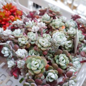 セダム・スパツリフォリウム ケープブランコ(白雪ミセバヤ)さんの 白銀の世界😻🤍💚💗 このコは室内管理ですが お外のコは茎ちゃんがピンクで ロゼットの数がもっと少ないです😺 こんもり感は室内に🥇 お色は外置きに軍配🥇です😸💕