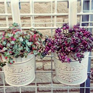 節操の無いプランターでセダム・スパスリフォリウム パープレウムさん(紫)とケープブランコさん(白)がお花を咲かせています😊