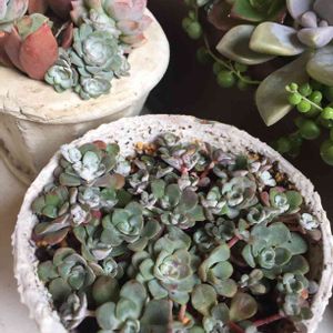 おはようございます😊☀️ 日陰に地植えして無惨に徒長したシラユキミセバヤの 先っちょだけをチョンパして 挿してから1ヶ月半位になります。 昨日までお外に居たせいか紅葉?して茎が赤っぽくなってます🎵 何故かシラユキの白さは消えてますが 白さ復活の気配はでてますよね💗 後ろの鉢にも寄せ植えに挿した子が写ってますよ😉可愛いでしょ💕💕💕
