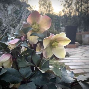 ひと足早く満開を迎えた 2年目のクリスマスローズ.モンテクリスト 鉢植えだけど こんなに沢山のお花を 付けてくれました💕 花の裏側の 薄っすらピンクが 可愛いね〜❤