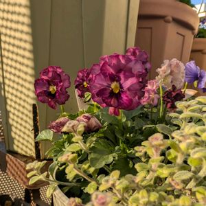 花日和 ティアード 2023年から販売が始まった花日和さんの品種。 小輪のフリルで、花数も多く豪華なビオラです。今回は寄植えにしました。
