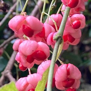 はみ出した真っ赤な種子が可愛い真弓さんですが、有毒植物誤食注意です⚠️ そろそろ見納めですね 花言葉は「真心」 🏷真っ赤な火曜日❤️