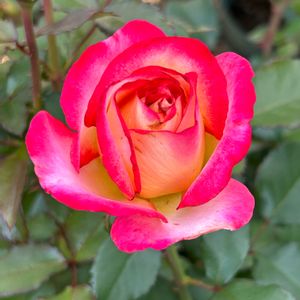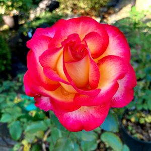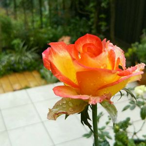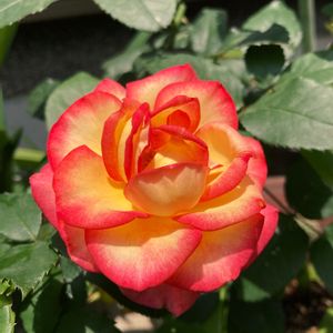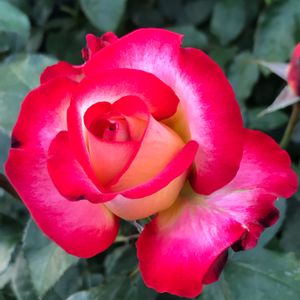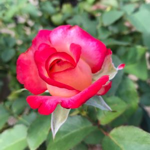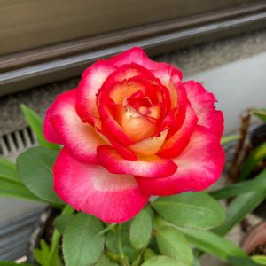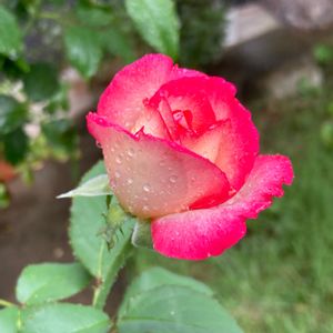 長雨で蕾が傷んでしまいましたが、3輪目で、やっと元気なお花が咲いてくれました。初めは黄色っぽくて、どんどん赤みが増してきます。毎日表情が変わるので、朝、挨拶するのが楽しみなバラさんです。 花友さん、ありがとう😊