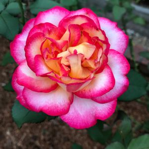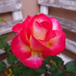 縁取りのに鮮やかなレオフェレさん。 渦が2つ見えるような気がします。 今年は昨年より小ぶりになってしまぅた薔薇が多い中、パッと鮮やかで嬉しいです😊
