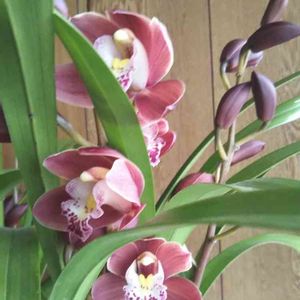 水滴の水曜日に参加させて下さい💧 シンビジゥム 30才のシンビジゥム 主人の鹿児島のお兄さんから30年前にいただきました ガーデンシクラメン 雨の水分でのびのび成長してます