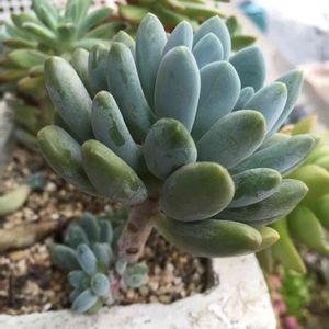 すぐ徒長してしまうのですが、うちに来て3年以上…カットせず辛抱強くほったらかし😁にしていたら可愛い感じになりました。茎が木化してます。フーケリーと同じかな?