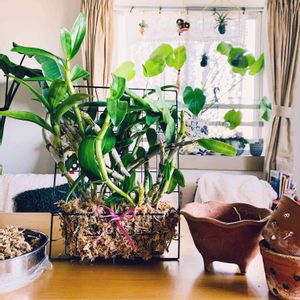 来週から寒くなるって😱 と言う事は、ウチの中に入れる植物が、増える、、、🤔 💡✨一昨日のラックみたいなのにデンドロをひとつにまとめよう😆 セ○○で、カゴを2種類買って合体させたら自立するし結束バンドで固定してるから吊るせる〜〜🙌 ヤッター🙌 支柱もいらなくてスッキリしました😍