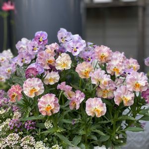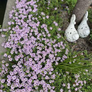 初夏のような陽気です☀️ ①寄せ植えの中の ときめきビオラ フルフリル 終盤ながら可愛く咲いています💓 ②サビ石花壇の タイム ロンギカウリス 直に挿しただけで毎年モリモリ 枝垂れるように咲いてくれます💜 小さなお花ですが、爽やかな 香りにも癒されます🥰