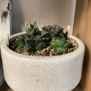 久しぶりに会うお友達にハオルチアの寄せ植え作ってみた✨ これからの季節はハオルチアが優秀だから💕 増えすぎた子株達を一掃することもできて一石二鳥😆