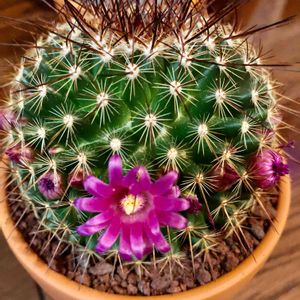 マミラリア ラウイ めちゃわかりにくいけど 小さい蕾みたいのがいくつか綿毛の下に出てきました、花なのか子株?なのかわかりませんが今後が楽しみです^ ^ あとよくわかりませんが、シワが出来てるサボテンがチラホラ… 日光の当てすぎかな⁇ 明日は日陰に置いておこうかな。