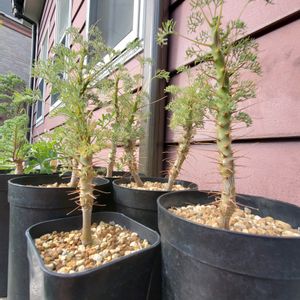 モンソニア三種 左上エマルギナータ 右下ヘレー 奥のムルチ2株は14ヶ月目、梅雨直前の植え替えで、9cmのスリットから12cmのロングプラ鉢に❗ 確実に弱ると思いますが、あまり良い用土を使っていなかったので、新鮮な塊根用土に早く植え替えてあげたかった😌 枯れないでくれ~❗
