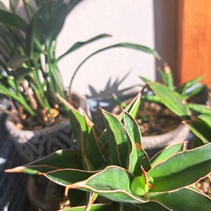 穏やかな日曜日の朝 今日は気温16℃ 北東の部屋、朝陽が最初に当たる場所 古株のサンスベリア 新芽が動き出してます♡