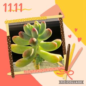 ゾロ目の日はいつも 色々「○○の日」になっていますが 先日買い物に行った時 ポッキー、プリッツをどれでも二個で 貰えたクリアファイル 「令和1年11月11日」の ポッキー&プリッツの日です❣️ いいな〜これ♪と思い 思わずポッキー4個も買って 娘に1枚渡すと 親友が11月11日生まれなので 彼女の方が持つに相応しいと プレゼントしていました さて一緒に撮った「マサイの矢じり」 11…の姿で木立になっていましたが 台風避難中に外からの力で押されて つつ…の形に変形してしまい 秋に置き場所を変えてから 少しづつ11の形に戻りつつあります 施肥してもう少し様子を見て 春になったらカット挿しするつもり だから頑張って冬越ししてね❤️