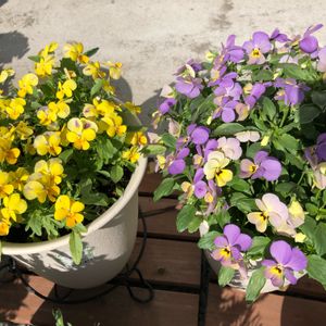おはようございます☀ 10月からバルコニーで植えっぱなしのビオラファーマーズクラフト2種の寄せ植え💜💛 花付きが良く、お花が途絶えません🌸 今日も素敵な一日をお過ごし下さい😊