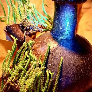 クラッスラ 若緑 吊り下がってましたが 置いて撮影‼️ コラボは、備前▪️▪️先生の土瓶‼️ 焼き締め、焼き色が イイですね〜🤗👍